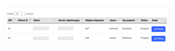 Możesz pobrać listę opon, dzięki czemu masz pełny wgląd w stan przechowalni. Ułatwi Ci to pracę podczas sezonowych wymian. Szybciej sprawdzisz jakie opony są dostępne, ich rozmiary, stan techniczny oraz ilość.